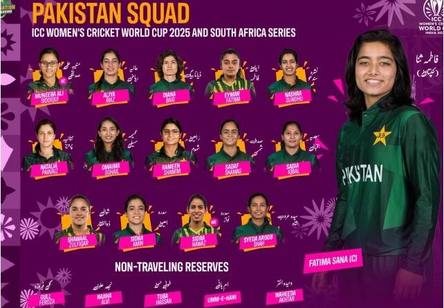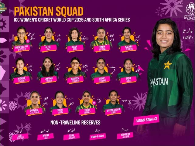 LAHORE: The Pakistan Cricket Board (PCB) on Monday announced a 15-member squad for the ICC Women’s Cricket World Cup 2025, with Fatima Sana named as the captain.