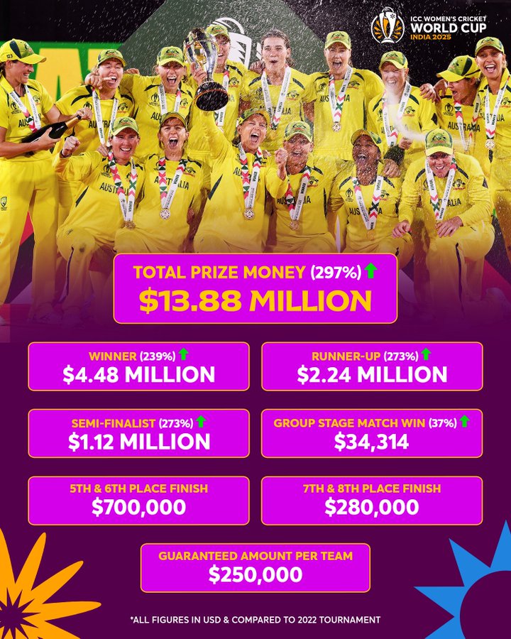 ICC Women’s Cricket World Cup prize money surpasses men’s mega event after 297% hike