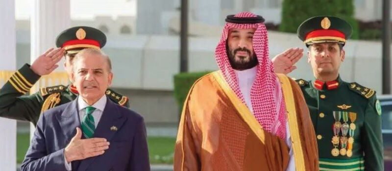Upon arrival at the royal palace, Qasr Al-Yamamah, in Riyadh, Shehbaz Sharif was welcomed with full royal protocol, including a mounted guard of honour. At the royal court, Mohammed bin Salman personally received him, and the Saudi armed forces also presented a guard of honour.