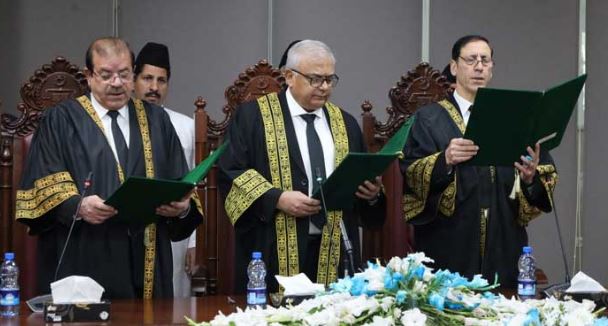 On Saturday, Justice Muhammad Kareem Khan Agha was sworn in an FCC judge which was preceded by the oath-taking of Justice Syed Hasan Azhar Rizvi, Justice Aamer Farooq, Justice Ali Baqar Najafi.