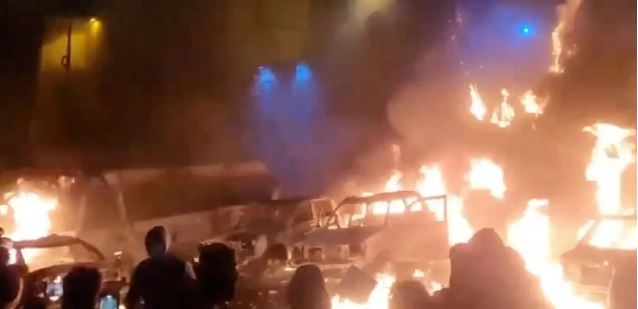 In the Pounak district of northern Iran, people were shown dancing round a fire in the middle of a highway. It was not possible to immediately verify the videos.