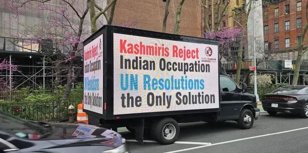 Digital trucks on New York streets flash Kashmir’s freedom messages